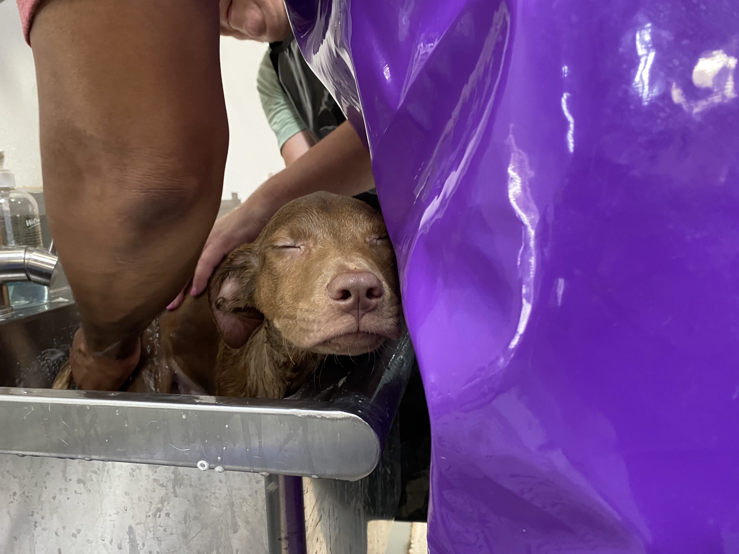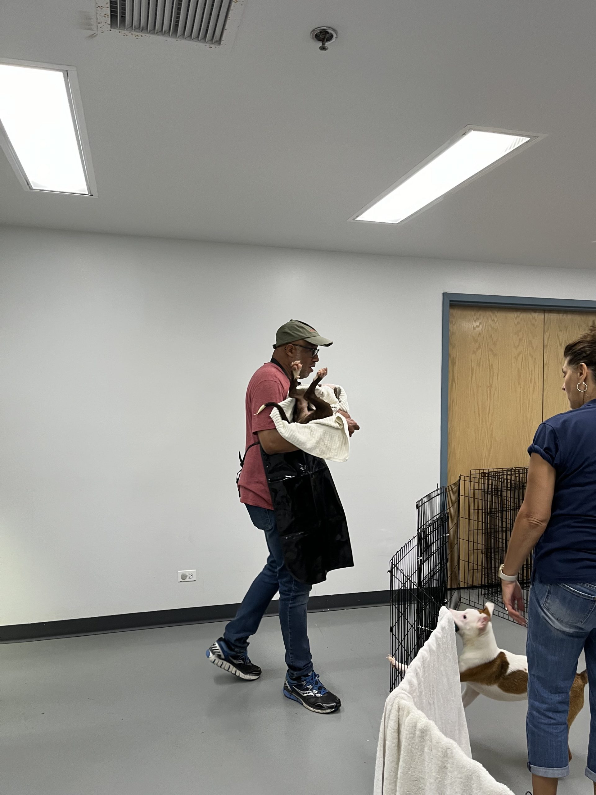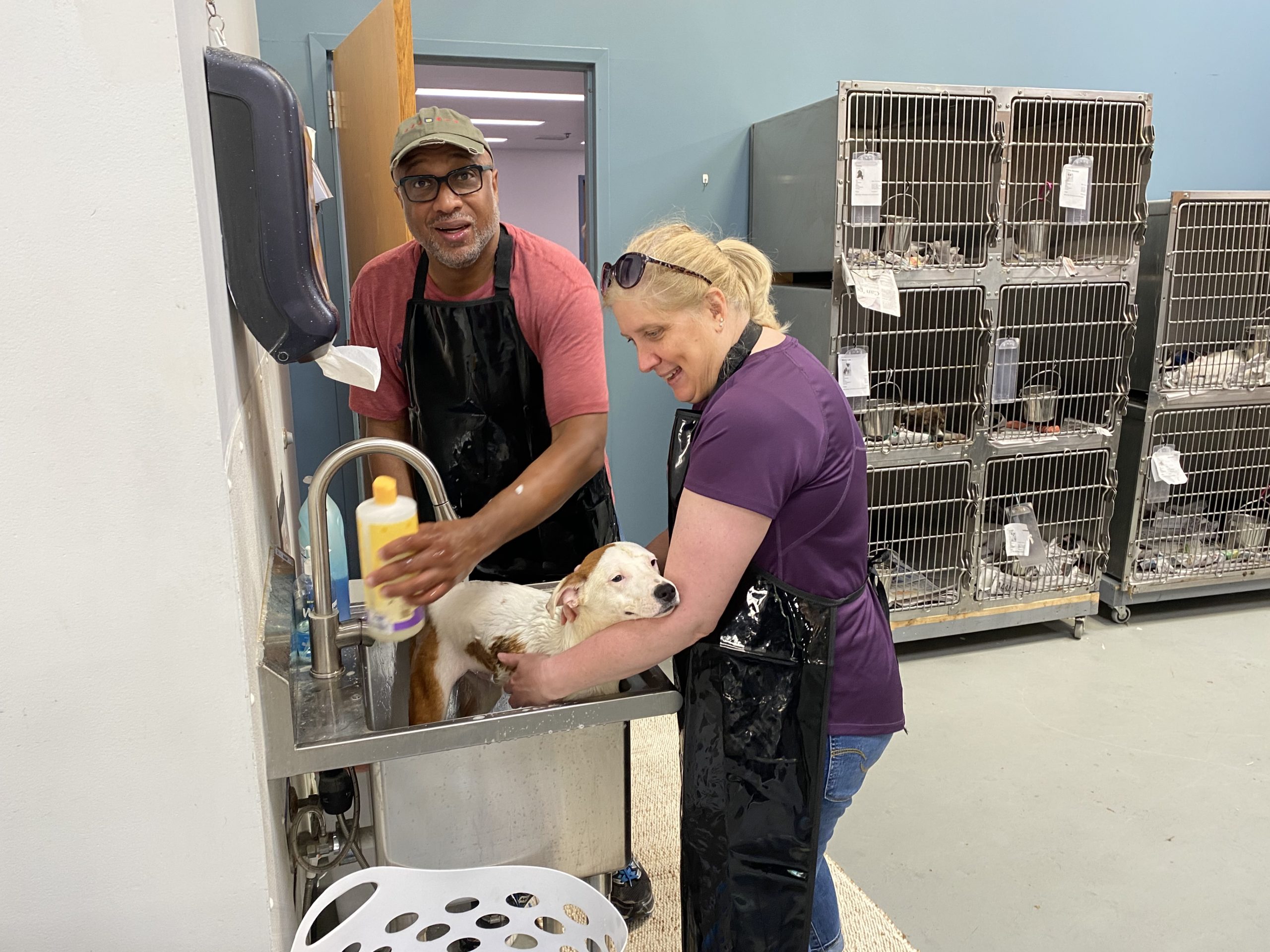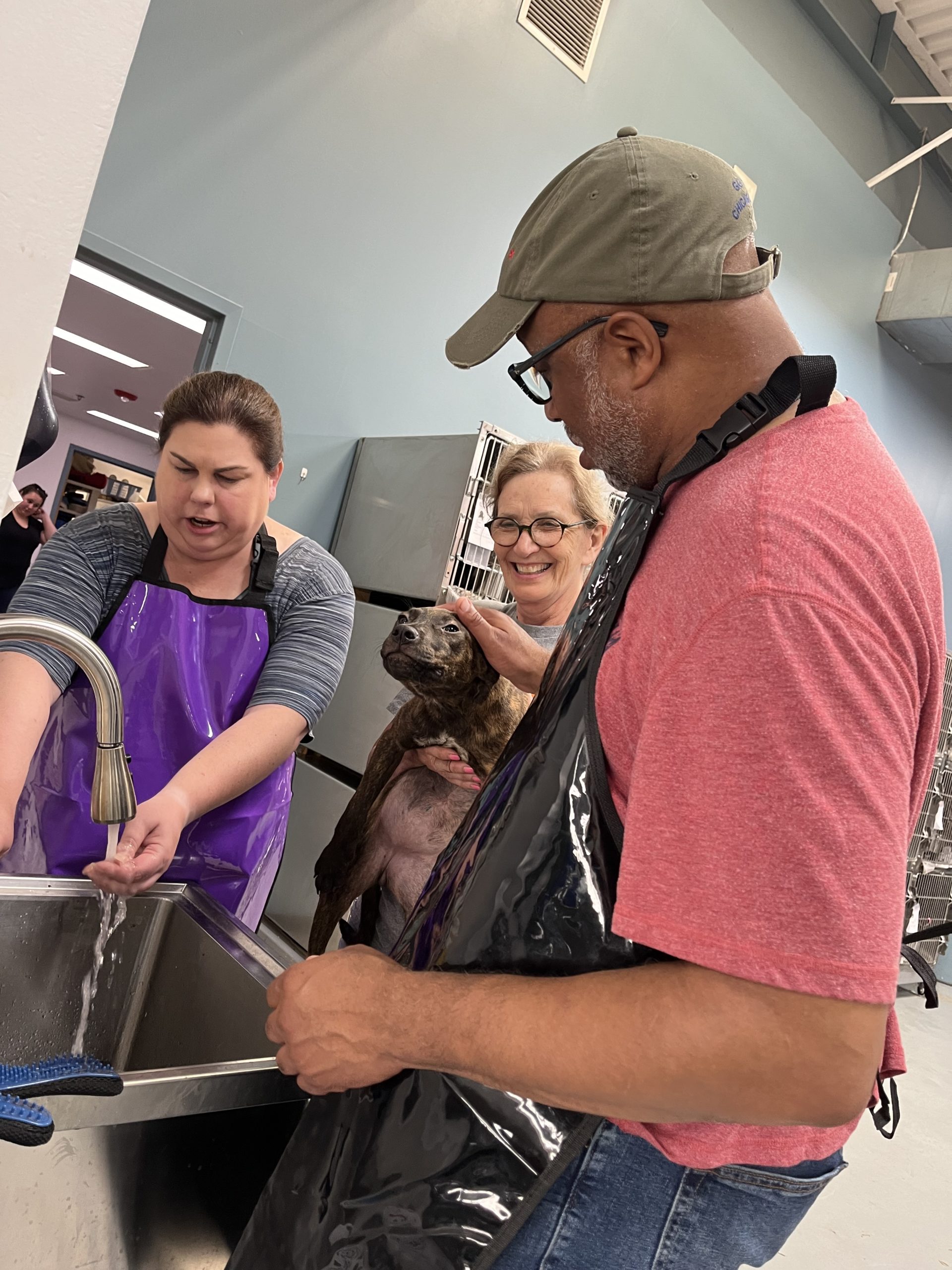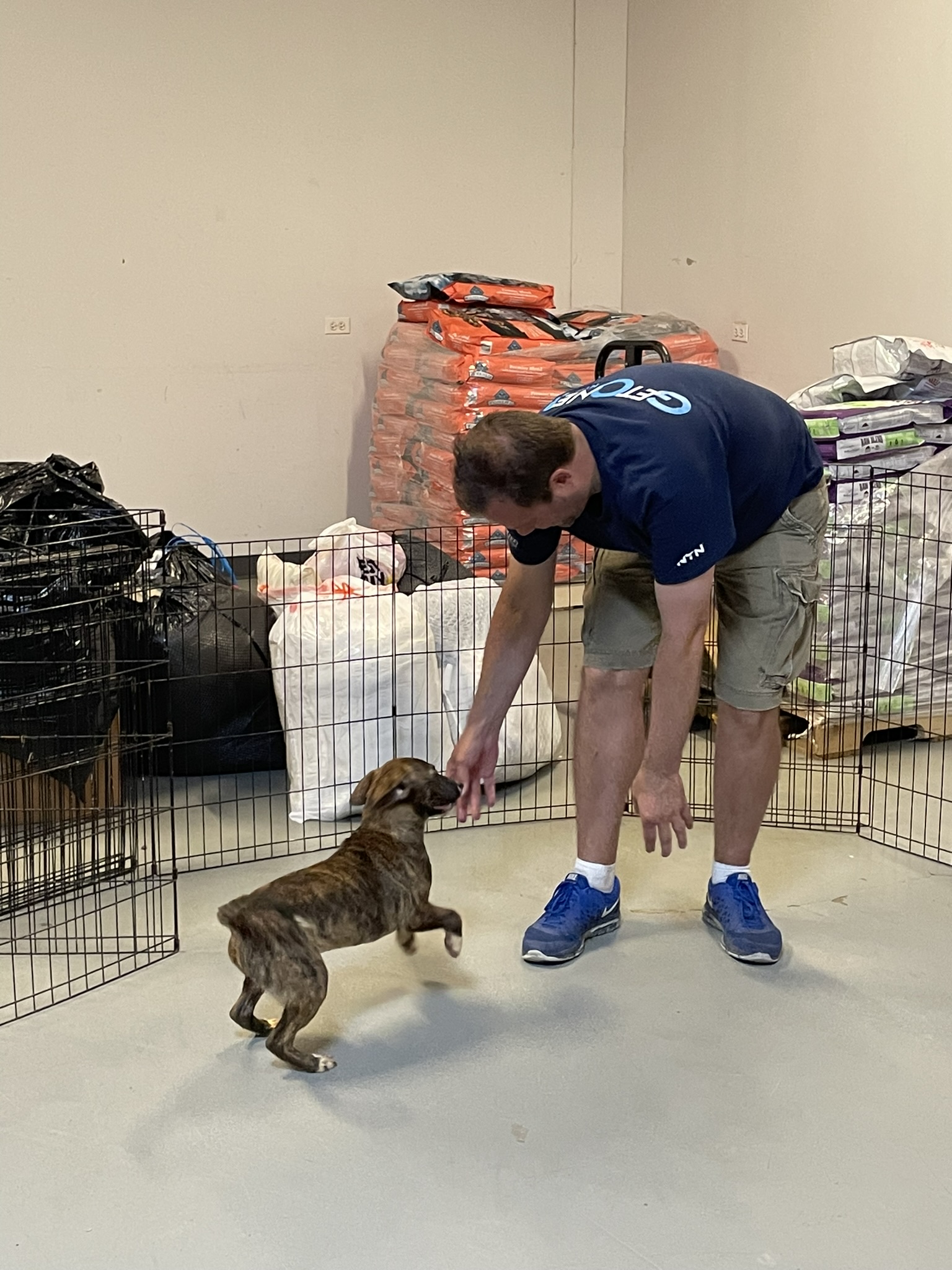 NTN’s volunteers started the morning out doing various cleaning and landscaping chores, painting crates, and loading Wright-Way’s shuttle bus for its weekly trip to the rescue’s Admissions and Medical Services Campus in Murphysboro, IL. The volunteers took a break to enjoy lunch at the nationally acclaimed Pequod’s Pizza. Located just a short walk from Wright-Way in Morton Grove, Pequod’s was recently named the #1 pizza place in the United States by Yelp. After lunch, the volunteers went back to work at Wright-Way, spending the afternoon walking and socializing dogs, bathing and grooming puppies, and socializing and enriching cats and kittens for adoption.